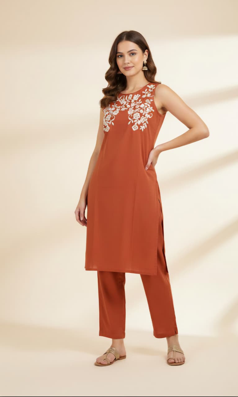 Bottom Wear: Coordinated straight pants with a functional side pocket for everyday convenience