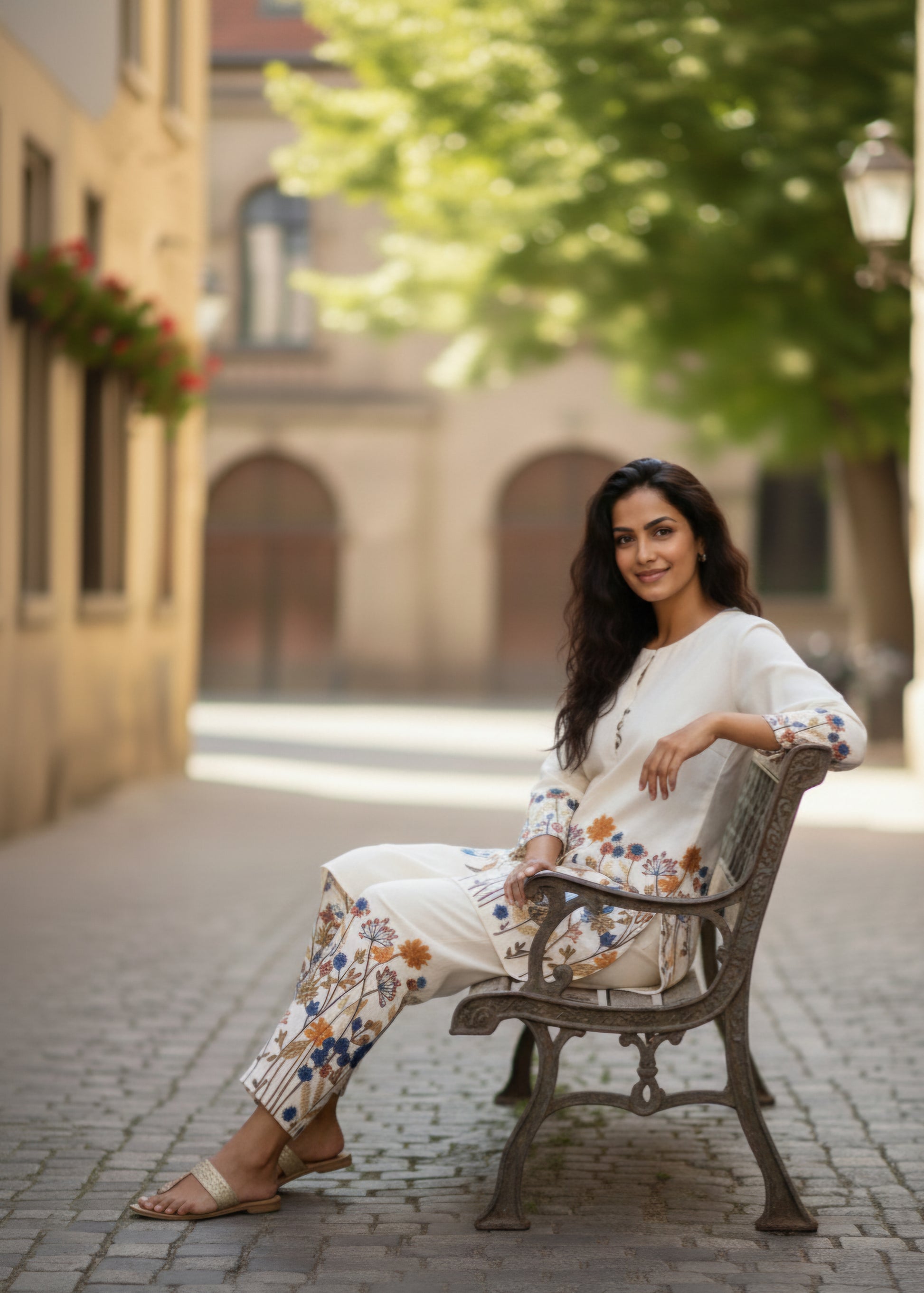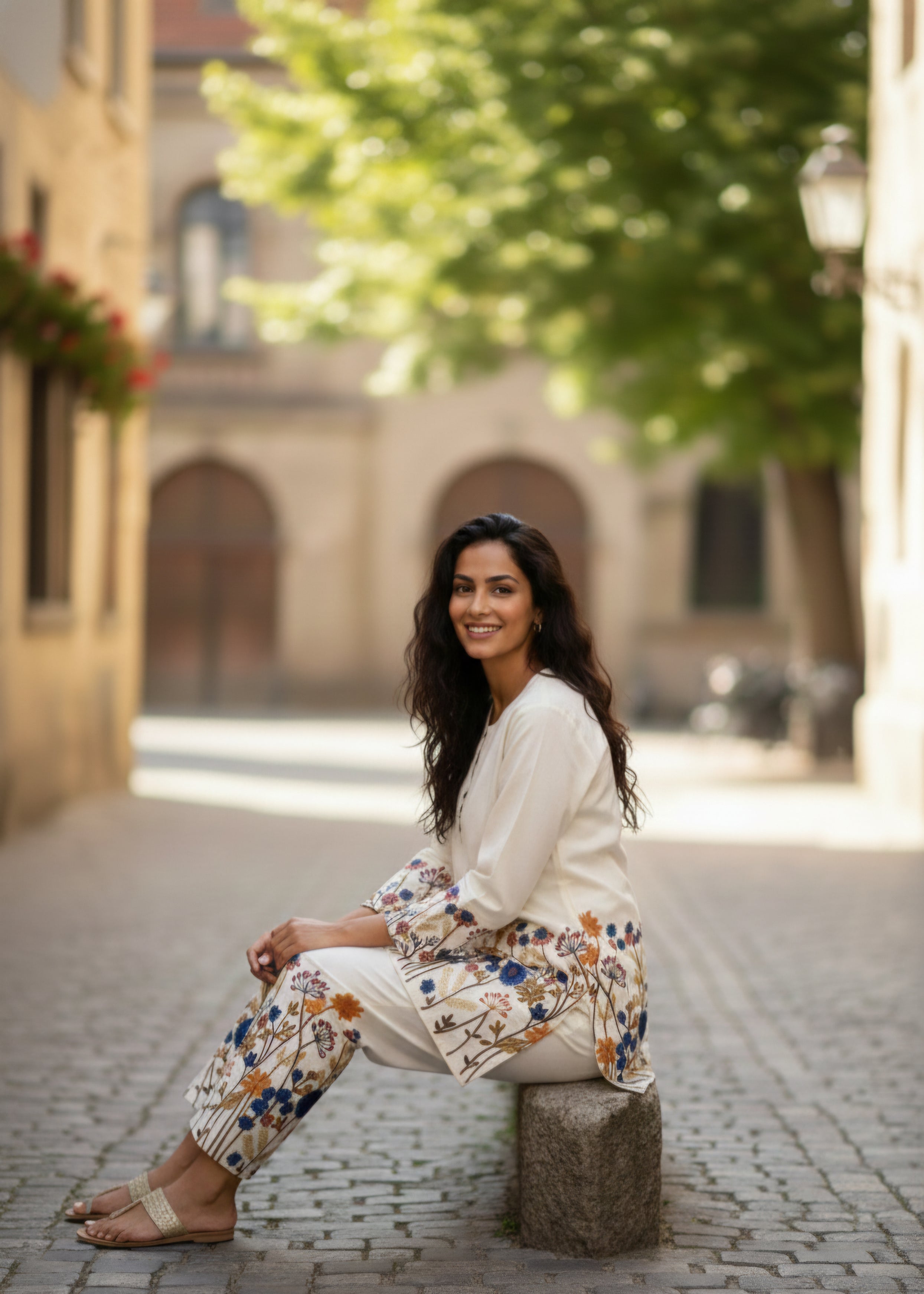 Bottom Wear: Coordinated straight pants with matching floral print